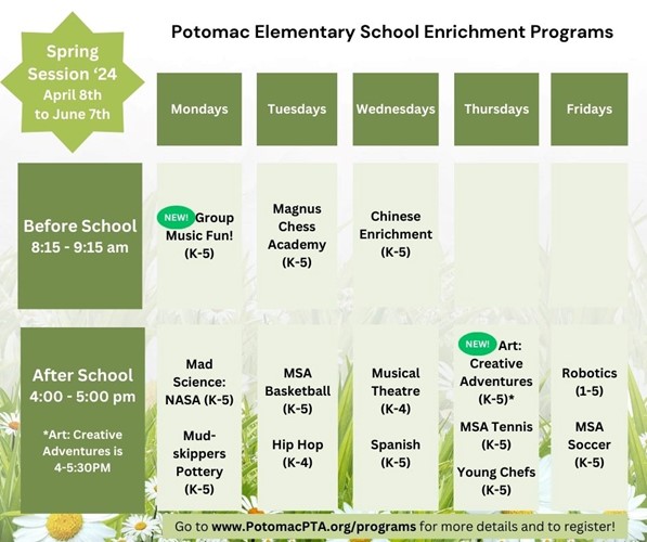 Important Note: The PES PTA is committed to providing parents with information on opportunities available for children. Unless otherwise specified, the programs outlined on this page are not endorsed by the school, PTA, or MCPS. Parents must contact vendors directly with questions and for registration information. We encourage parents to research any and all programs before signing up their children. We also welcome feedback and suggestions from parents as we curate this list.