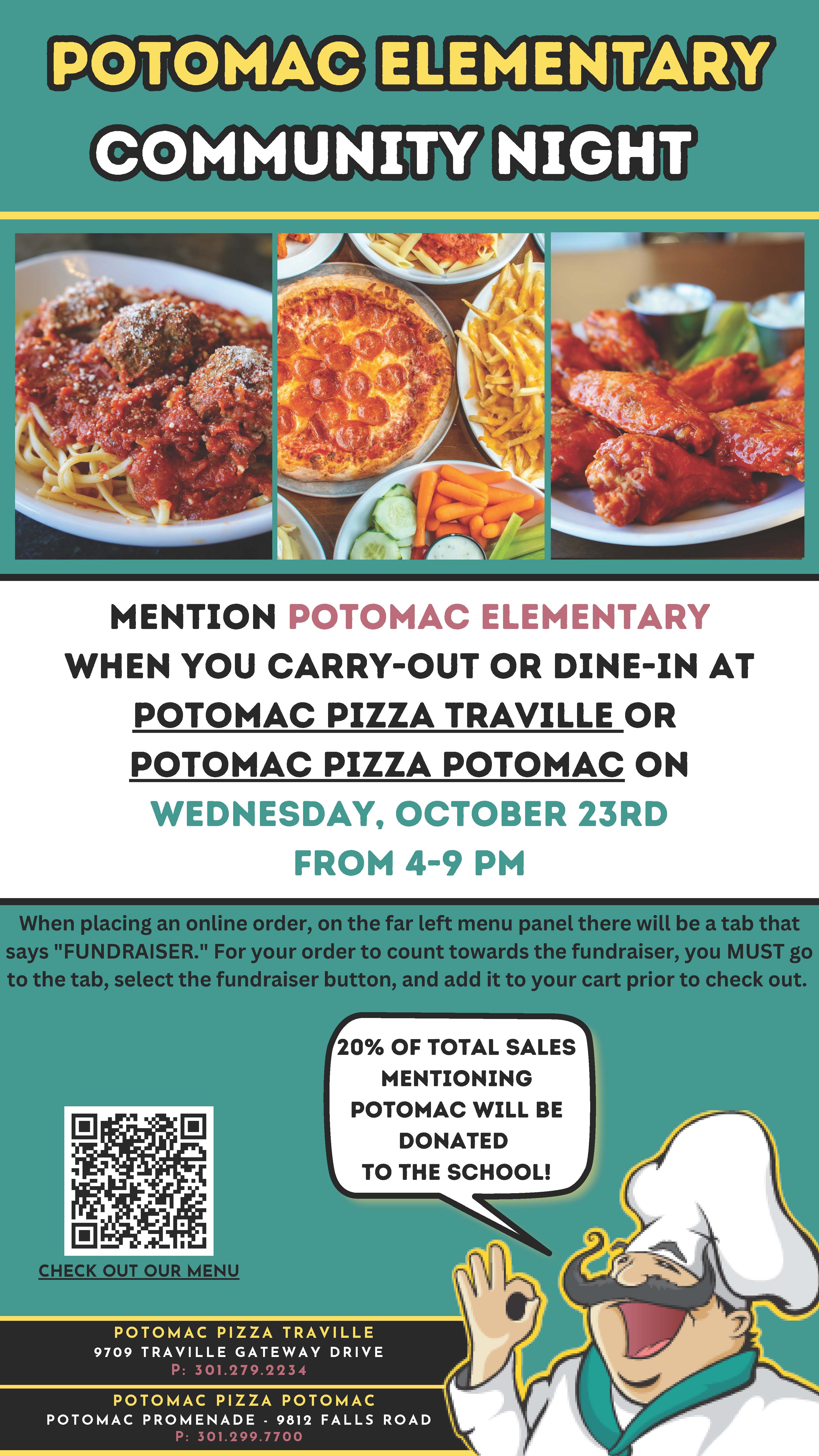 Mention Potomac Elementary when ordering by phone! Be sure to choose the fundraiser tab and add to your cart when ordering online.