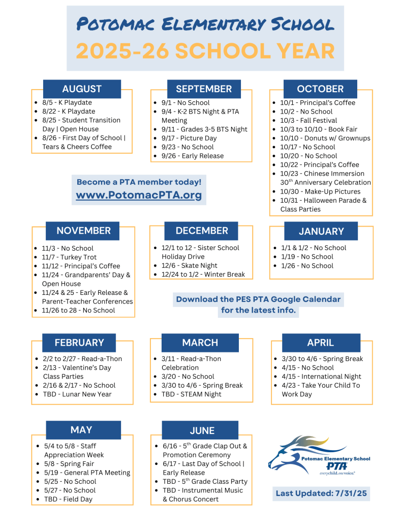 Please note all events and activities are subject to change. We encourage all parents to closely read emails to confirm events taking place. Thank you!
